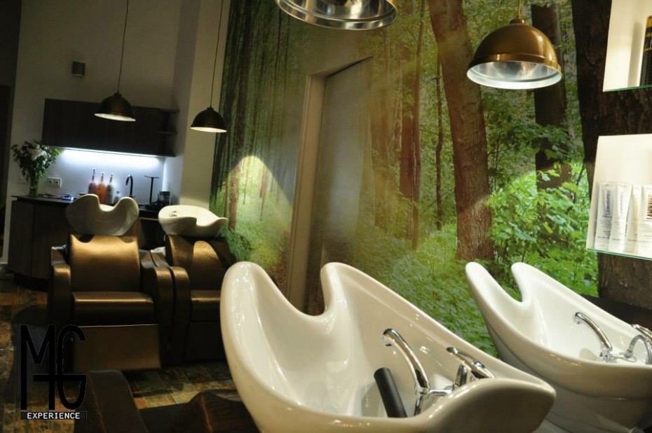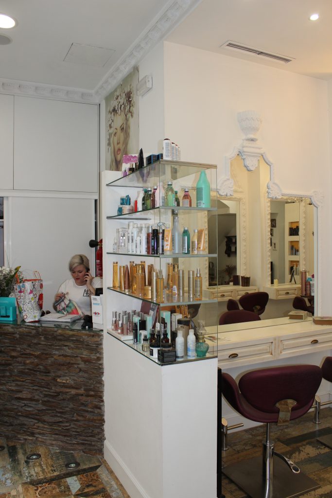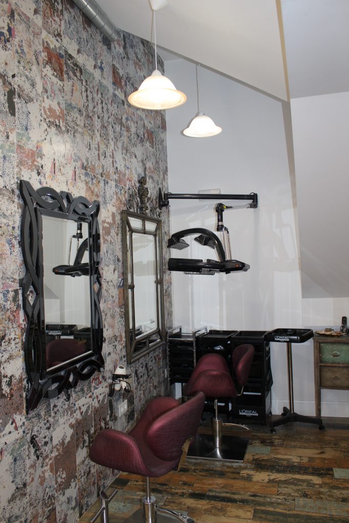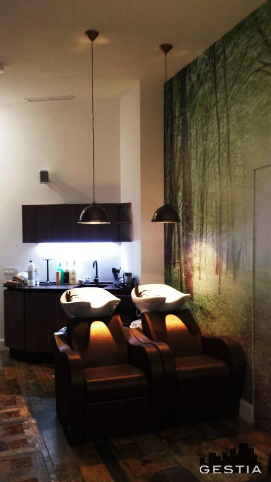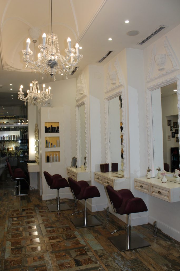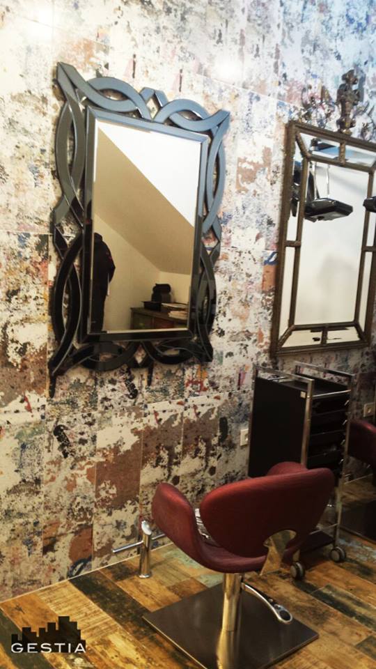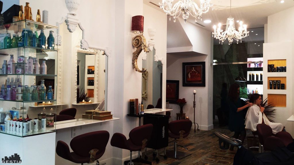 Diseño de la peluquería con un estilo clásico con toques naturales y lleno de detalles.